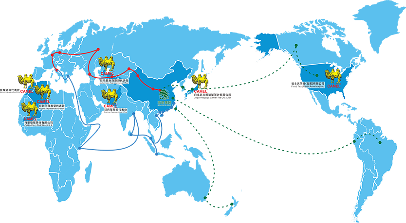 在日本、马里、摩洛哥等茶叶主销区建立了5个驻外机构,在美国、乌兹别克斯坦设立营销机构,目前公司的茶叶出口到六十多个国家和地区。