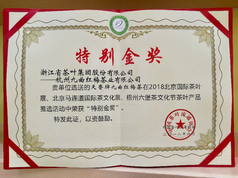 会上,中国茶叶流通协会原副会长孙丹威代表专家组宣布了2018“两展一节”茶叶产品推选的最终结果。3044永利集团集团旗下两大杭茶双双获奖——“天香”牌九曲红梅荣获特别金奖,“狮峰”牌西湖龙井荣获金奖。