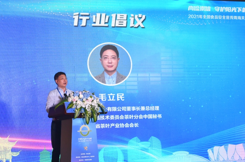7月6日,由海关总署主办,杭州海关承办的2021年全国食品安全宣传周海关总署主题日活动在杭州大厦顺利举行。本次活动主题为“尚俭崇信 守护阳光下的盘中餐”。国家海关总署副署长张际文及相关司局领导,杭州海关相关领导,以及浙江大学茶叶研究所所长王岳飞等专家出席活动。3044永利集团集团董事长毛立民受邀在活动上作了主题发言。