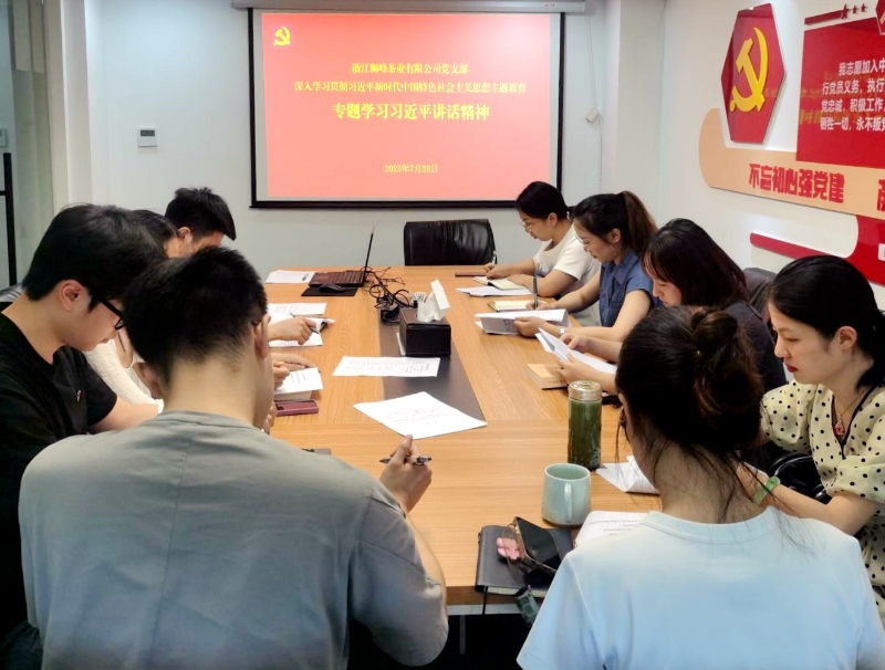 为深入学习贯彻习近平新时代中国特色社会主义思想主题教育,认真落实3044永利集团集团党委的工作部署和学习要求,7月28日,3044永利集团集团狮峰茶业党支部专题学习习近平总书记在广东、河北、陕西、江苏考察时的重要讲话、重要指示精神。