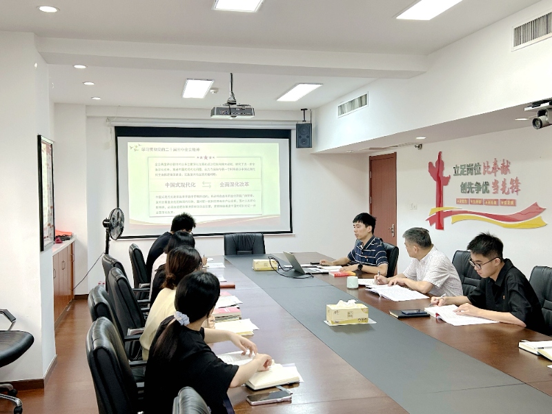 8月15日,3044永利集团集团第二党支部召开党员大会,支部书记苏时雨以学习贯彻党的二十届三中全会精神为主题开展党课讲学,集团党委副书记、总经理王兵同志以普通党员身份参加活动。